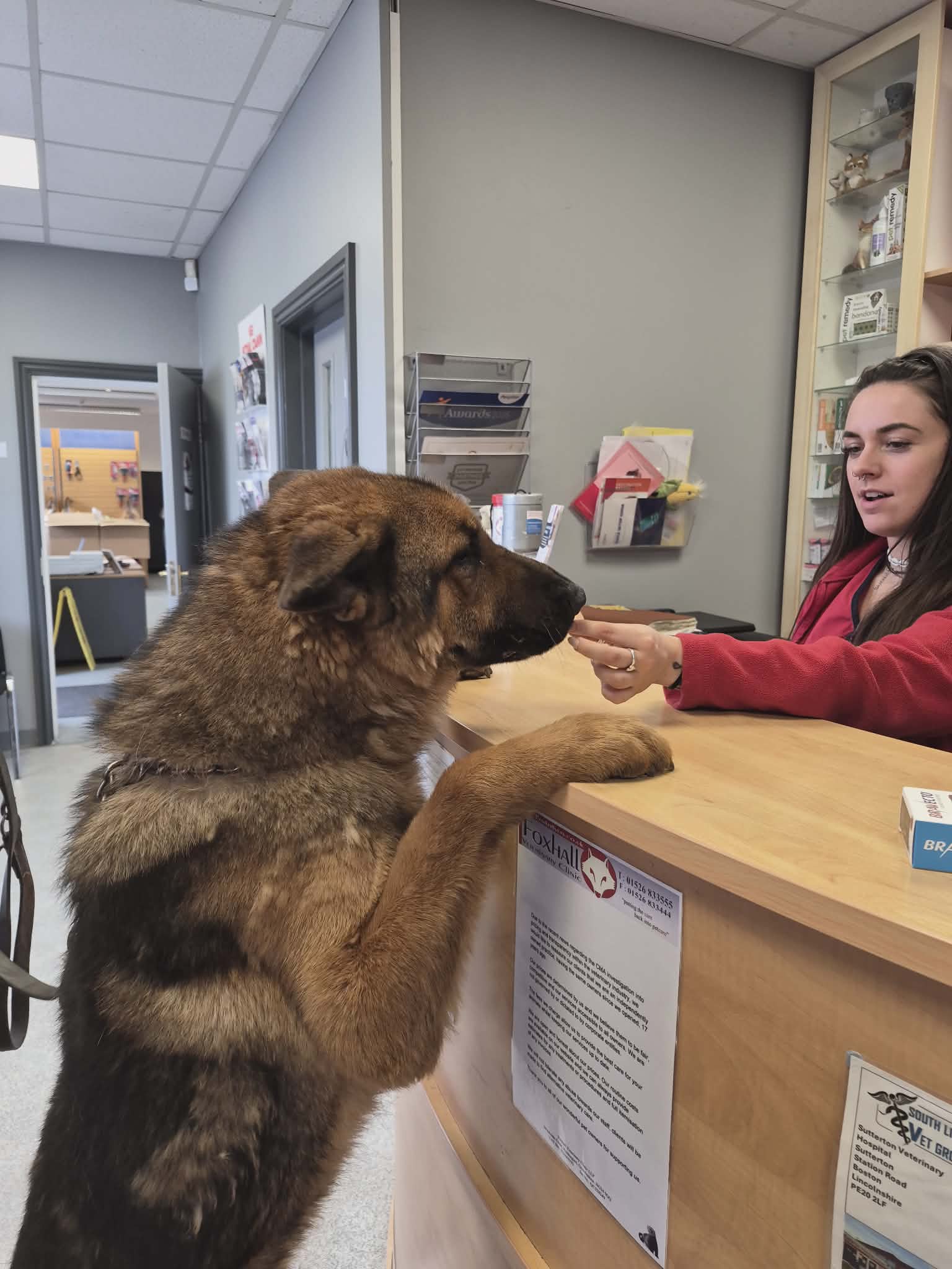 He is entire, microchipped, and vaccinated. He behaves very well at the vets
