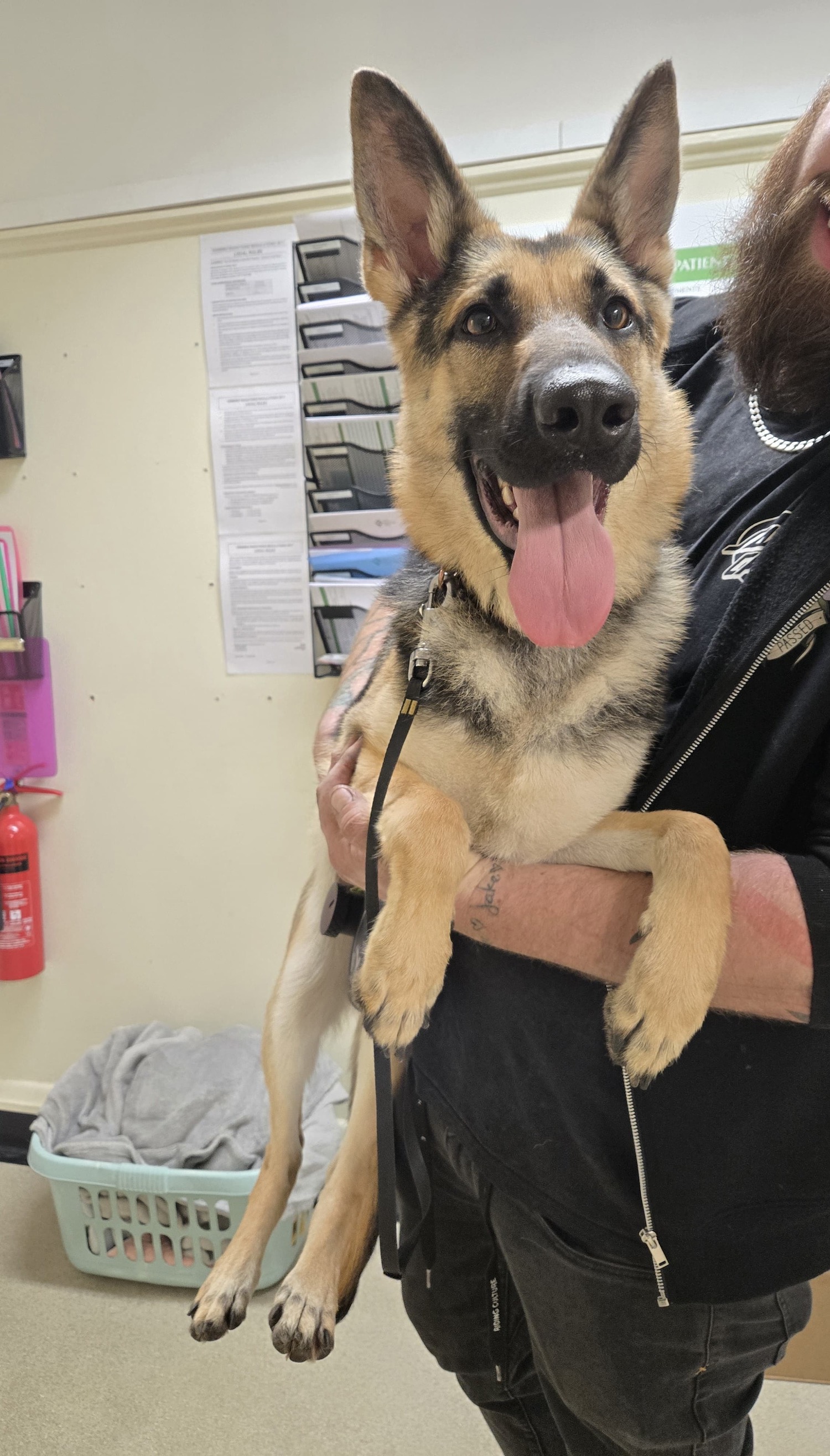 During her time at the practice, the vet nurses have taken turns walking and spending time with her. They all describe her as a loving, affectionate young girl who simply needs some guidance. Iris can be nervous when meeting new people and can be quite vocal, but this is likely due to a lack of early training and socialisation.