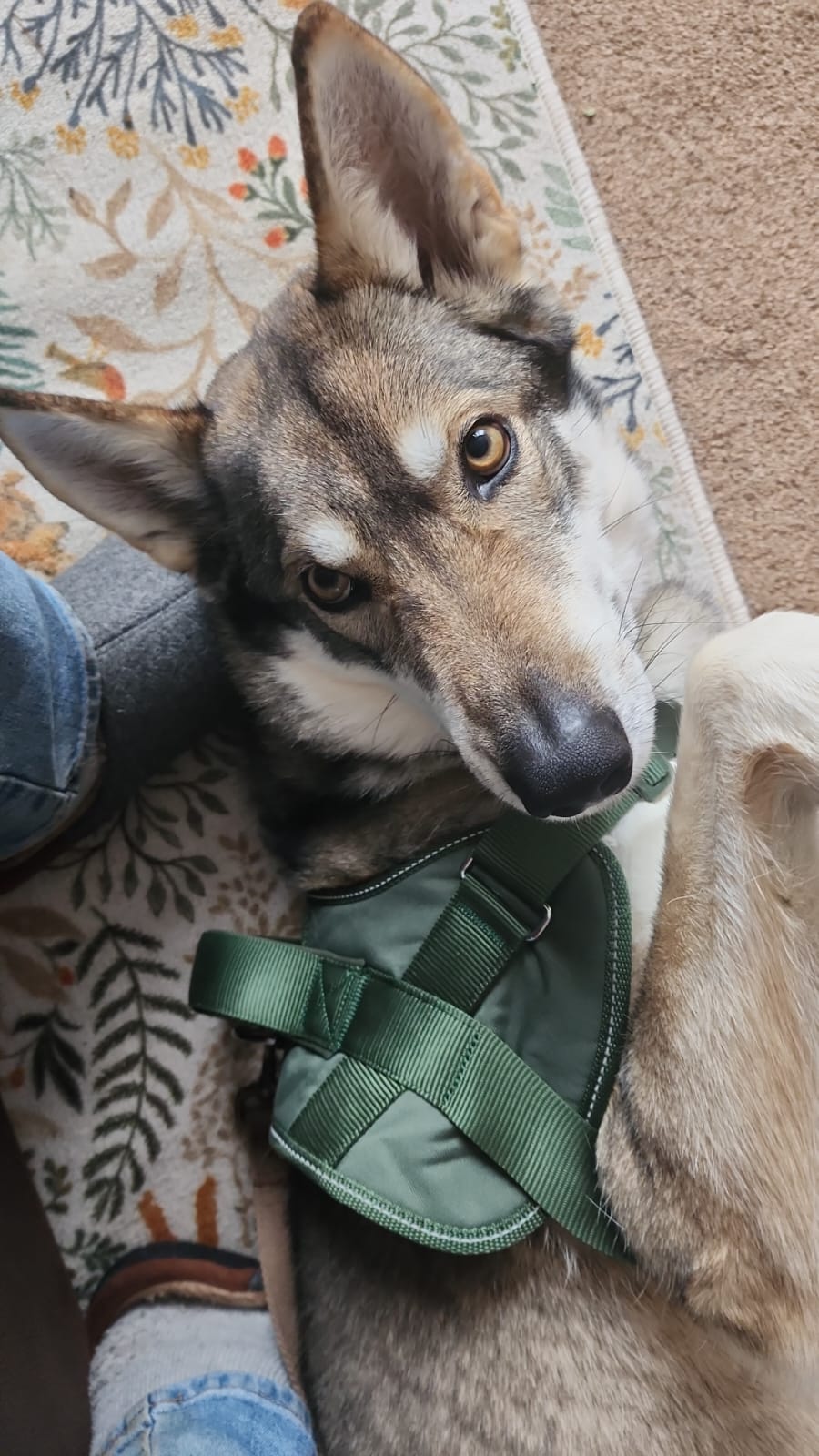 She has zero recall and with her nature secure fields rather than open countryside would be far better for off lead activities. Country walks in the wide world would need to be on a long line.. She is relatively petite and her breed papers call her a "caledonian Wolfalike" she has traits of her breed, not over;ly guarding but a high prey drive .