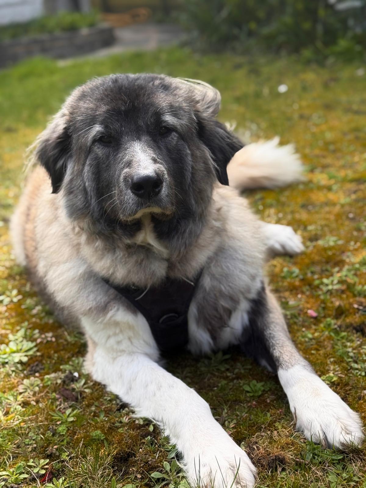 Lola is typoical of the caucasian breed, She does protect her home and garden and will bark but not excessively.