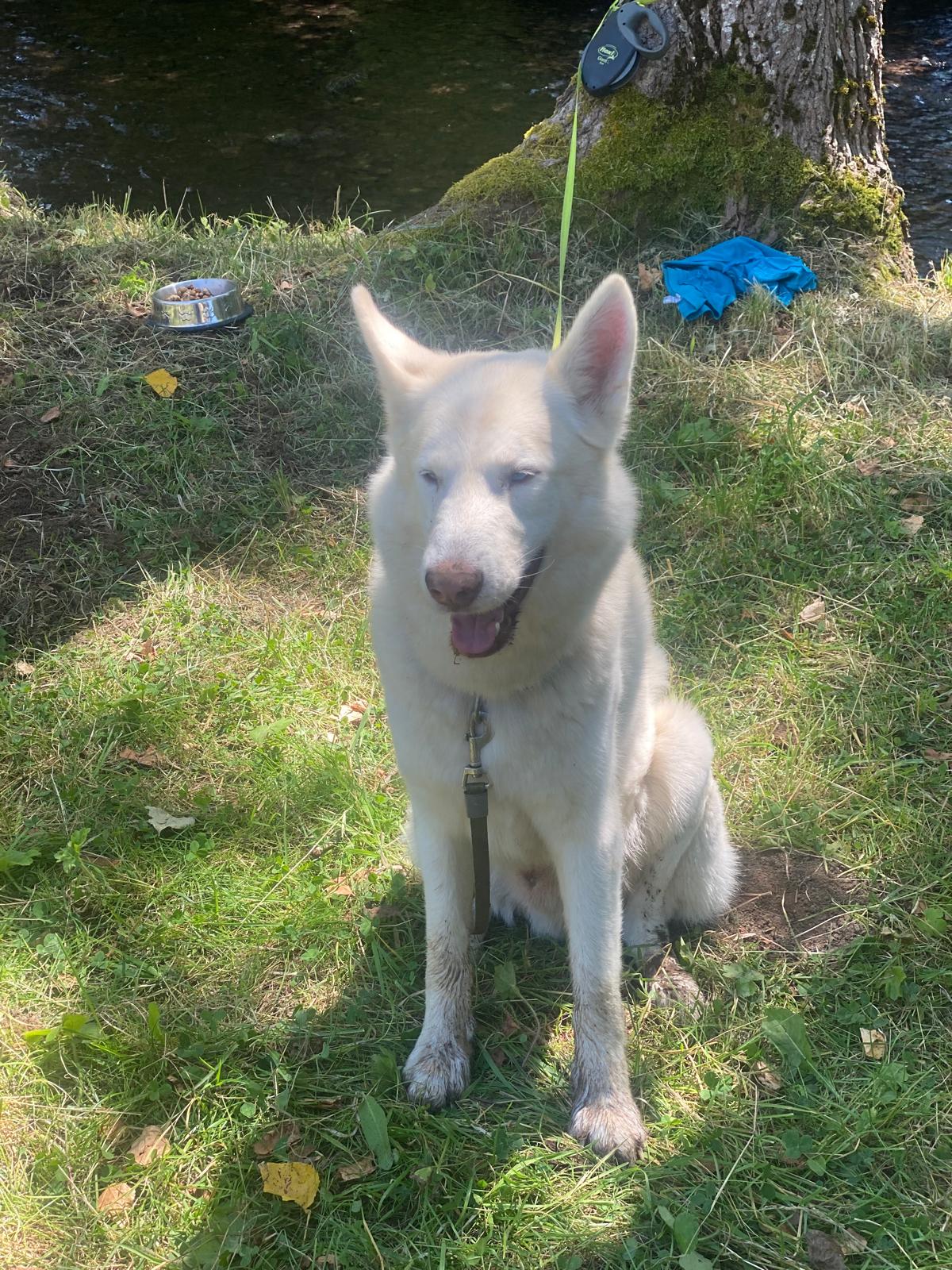 Lupo is a stunning 7 year old entire white GSD x Husky. He is a wonderful family dog who is great with all people.