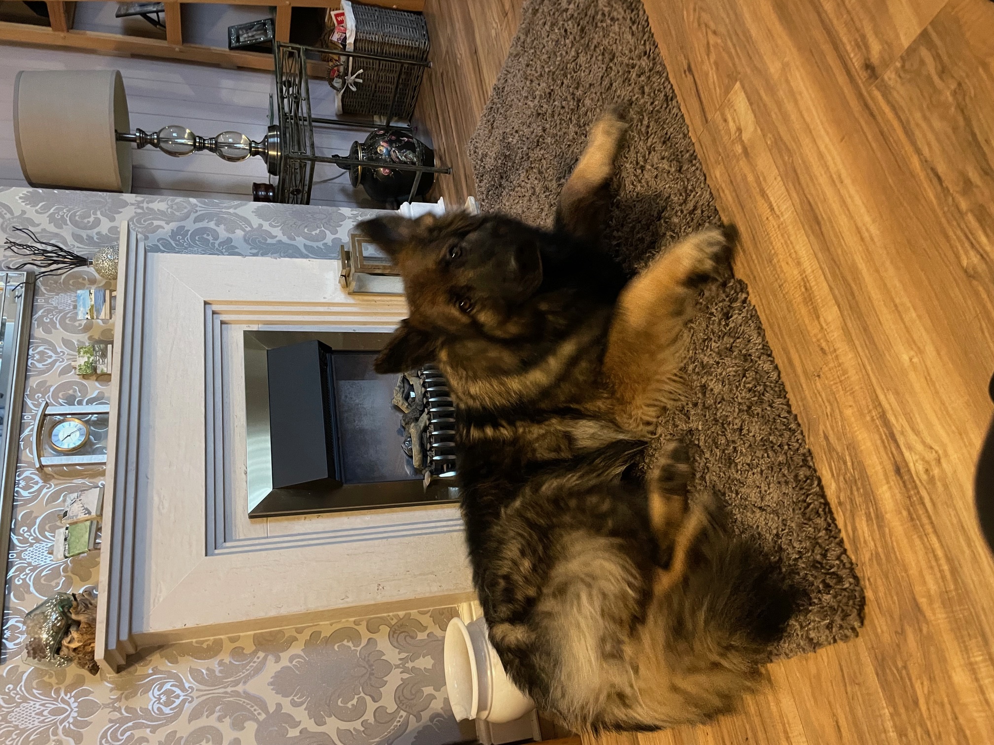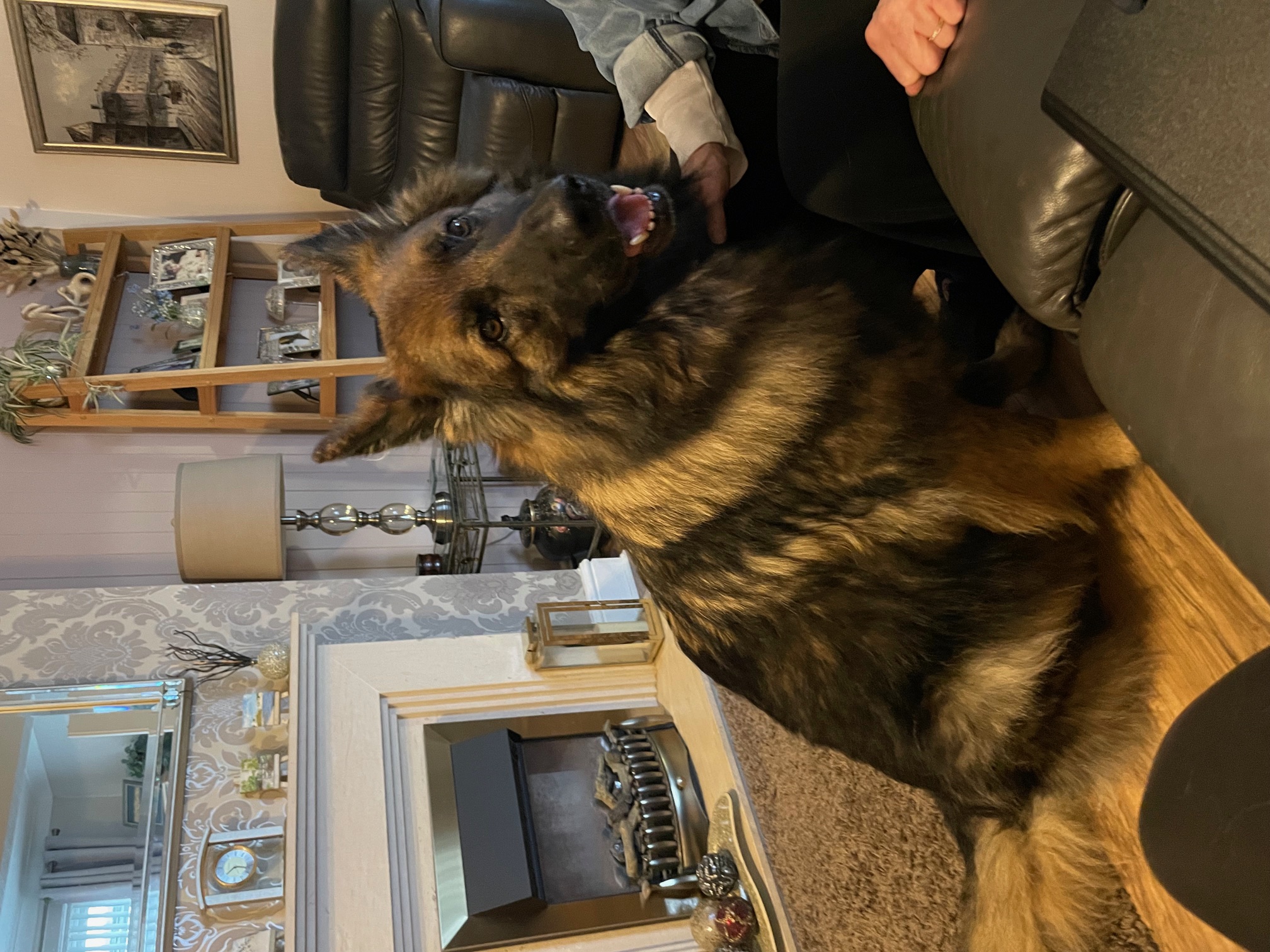 Ollie is a typical GSD protective of his home and will bark to alert deliveries. He greeted the volunteer very nicely and was pleased to see her.