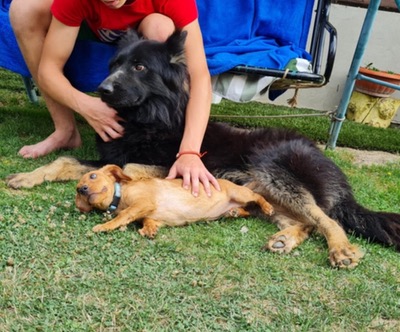 Rex has been amazing with the dogs both large and small and so could share his home with other dogs
